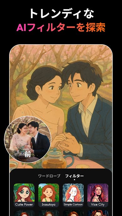 100種類以上のフィルターを搭載しており、古い写真を綺麗にしつつ、Y2KやVHSなど懐かしい雰囲気づくりもできる優れものです。