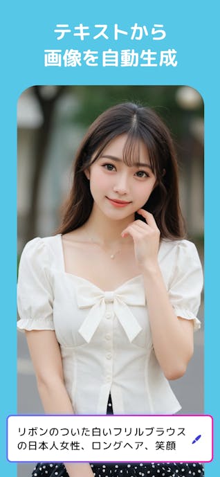 「文字から画像」を生成する機能や「写真からイラスト化」する機能も搭載されており、創作の幅は無限大。