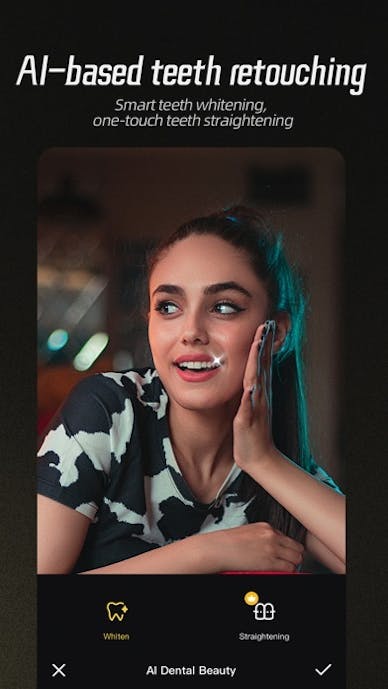 AI自動補正と豊富なビューティー機能を組み合わせて、明るく均一な肌トーンを作れます。