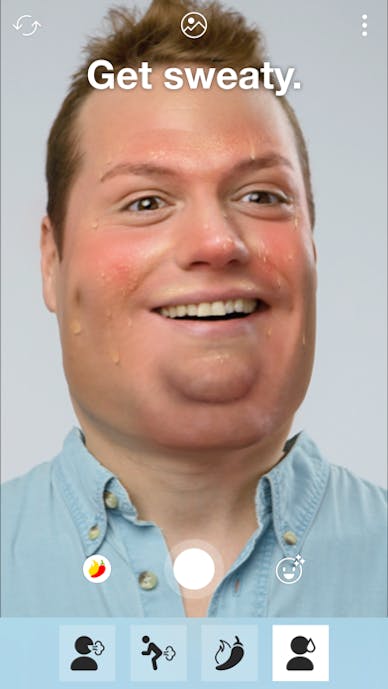 顔や体型など部分的に細かく変化させる機能はなく、写真で一気に太らせるフィルターなので、その点は注意。