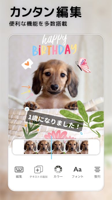 文字入れ・スタンプ・高画質保存までワンアプリで完結し、世界観の演出まで一気に進みますよ。