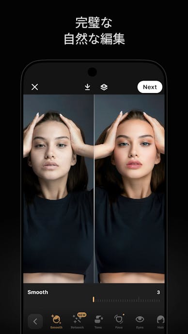 『Meitu(メイツ)』は、AI加工と本格編集を一つにまとめた写真&動画編集アプリ。