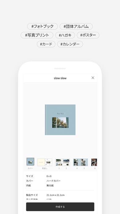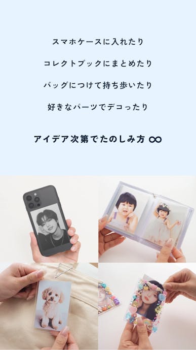 フォトブックやカレンダー、シールなど関連グッズもそろい、統一感のあるオリジナルグッズが作成可能です。