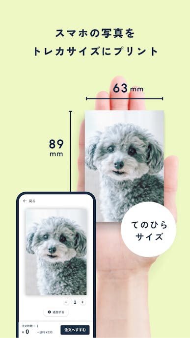 スマホの写真を89×63mmの一般的なトレカサイズで注文でき、銀塩プリントで届く点が大きな魅力です。