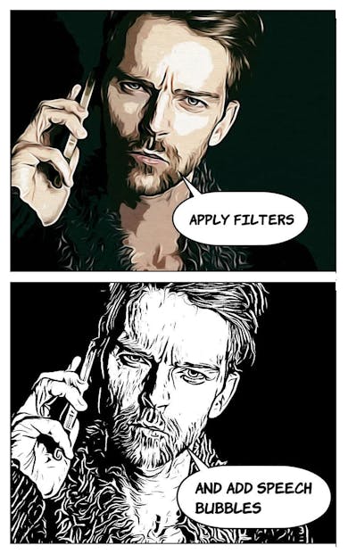 編集アプリを使えば、普段の写真もワンタップで主人公感あふれる“迫力あるアメコミ調”に早変わり。