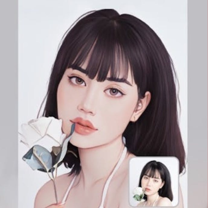 人物写真を選ぶと線や影がくっきり強調され、SNSのアイコンに映える迫力に変化。