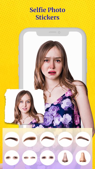 写真を読み込んで涙・鼻・眉のステッカーを重ねるだけで、表情を“泣いてる風”に変えられます。