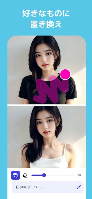 AI置き換えで被写体の一部を差し替えられるため、初心者でも迷わず操作できます。