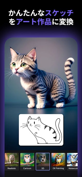 テンプレートを選ぶだけで漫画・手描き風・ベクタースタイルまでワンタップ変換でき、SNSのプロフィール用の個性的な一枚づくりが進めやすい仕様です。