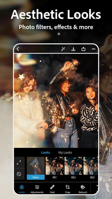 第4位. Adobe Photoshop Express:赤目補正で白目を綺麗に発光!過度な加工感を避けながら目元を明るくする加工スマホアプリ