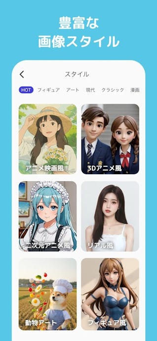 アニメ風や水彩画風など多様なスタイルが紹介されており、手軽にアート表現へ近づけるのが魅力です。