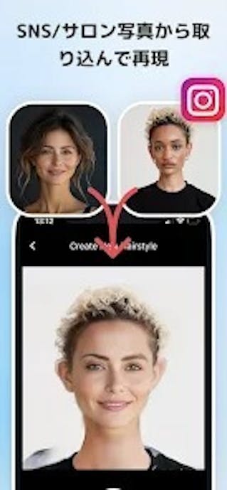 メイクや髪型をシミュレーションできる自撮り向けアプリとして知られていて、顔写真を読み込むだけでヘアスタイルの試着が行えます。