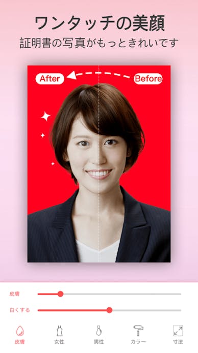 撮影から補正までをスマホで完結でき、履歴書や各種書類向けの写真を自分らしさを残したまま準備できます。