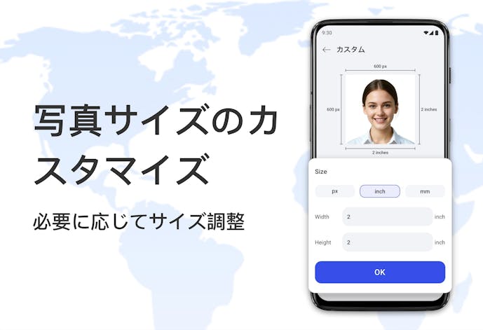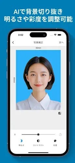 第2位. 証明写真アプリ:数値入力でサイズ指定できるのが便利!免許証やパスポートなど複数用途で使える証明写真スマホアプリ