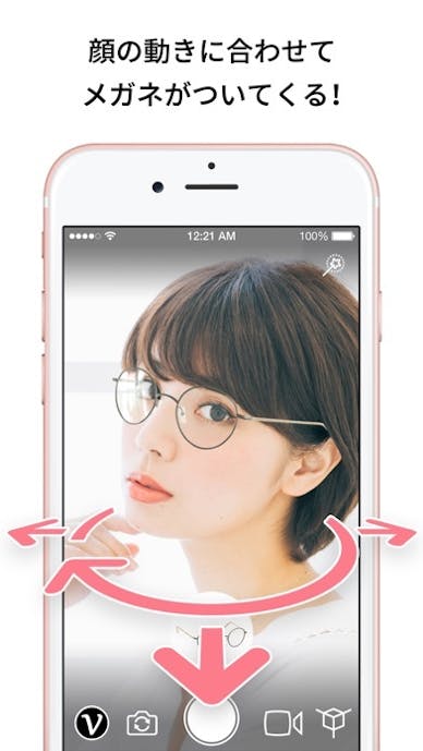 顔を捉えるとメガネやかぶりものがリアルタイムで追随し、「今このメガネならどんな雰囲気か」をその場でチェックできるのが特徴。