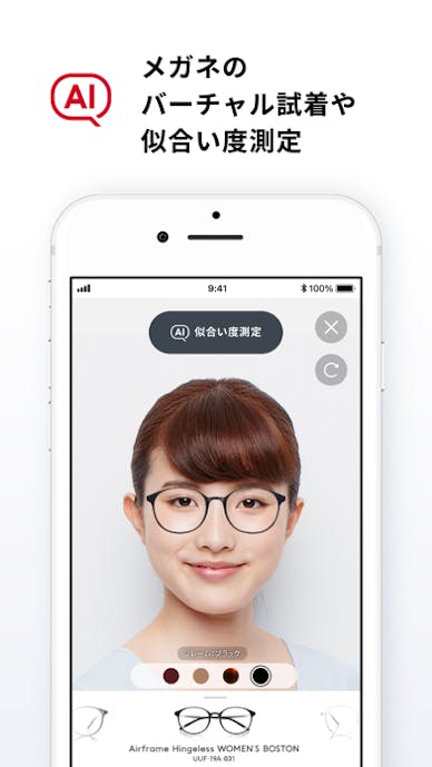 AIが顔の特徴を読み取り、サイズやスタイルを自動提案してくれるため、自分では選ばないフレームとの出会いも叶います。