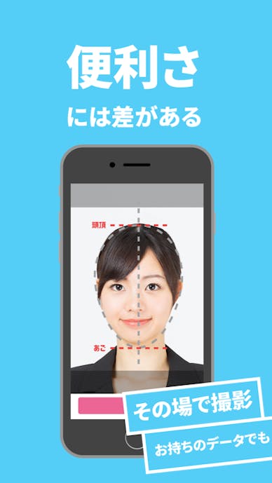 画面には顔位置のガイド線が表示され、枠に合わせて撮るだけ。