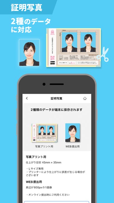 背景は自動で切り抜かれ、白やグレーなど規定に合う色へ変更可能。