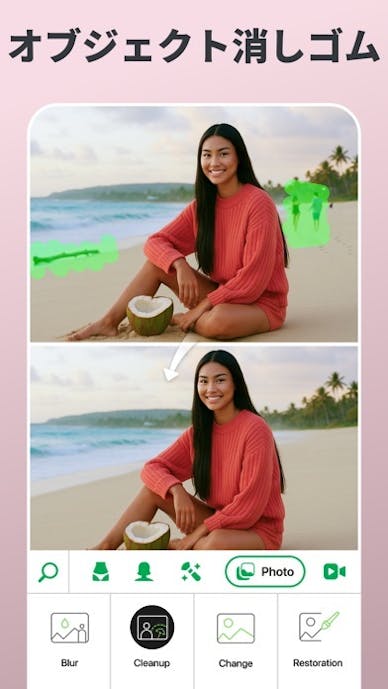 眉をなぞった瞬間にスッと消えていくAI処理が想像以上に自然でびっくりしました!