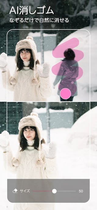 AIが人物と背景を自動認識してくれるため、ワンタップで切り抜きが完了し、細かい操作が苦手な人でも安心。