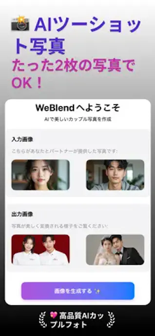 第7位. WeBlend:テンプレが豊富で場面の雰囲気を選びやすい!デート風や旅行風にも寄せやすい写真合成アプリ
