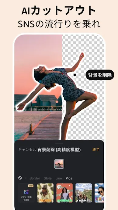 そして、AIが人物や物を自動で切り抜き、ワンタップで背景を透明化。