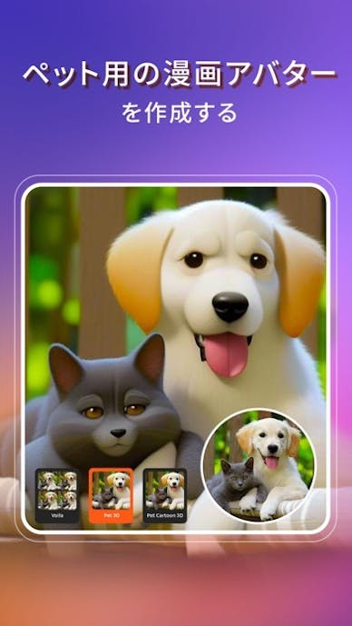 家族や友人、ペットの写真もカートゥーン3Dやスケッチ風に変換できます。