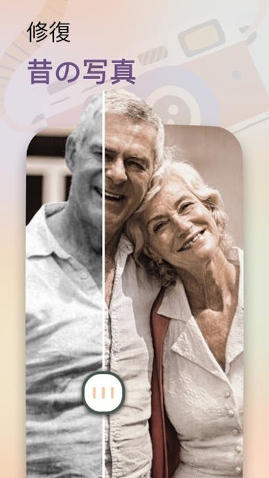 使い方は両親の写真を2枚選び、スタートを押すだけ。