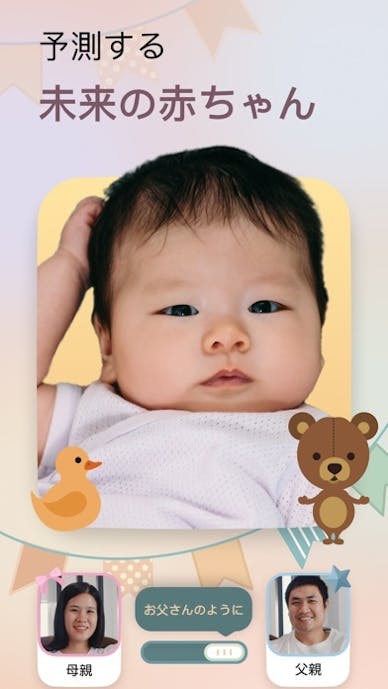 年齢や性別を指定して赤ちゃんの顔を予想! パパとママの顔から赤ちゃんの顔を予想するアプリ |