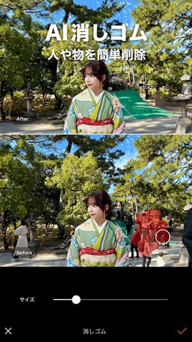 加工が完了したら、右下のチェックマークをタップしましょう。