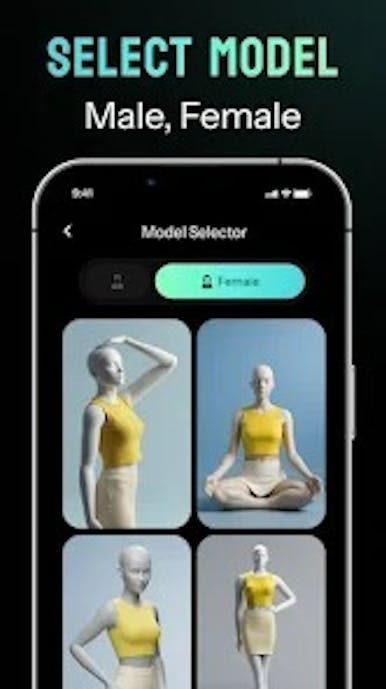 操作はシンプルで、まず男性か女性のモデルを選択。