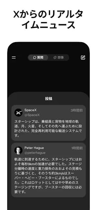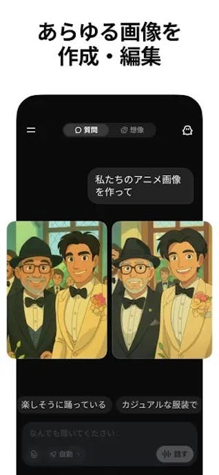『Grok』は、会話しながら画像生成や編集の相談ができるAIアシスタントアプリ。