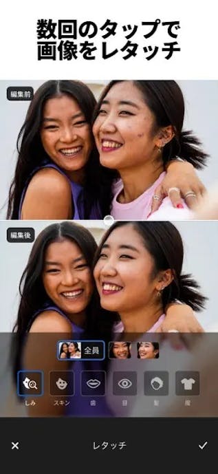 『Adobe Photoshop』は、撮影日や場所が違う2枚の写真を同じ雰囲気に整えられる無料編集アプリ。