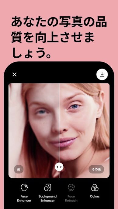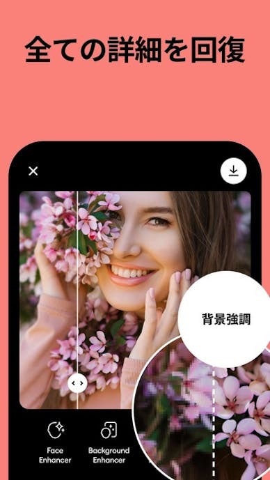 アプリを開き、写真を選んでタップするだけで、AIが自動で解像度を高めて、顔の細部までシャープに補正。