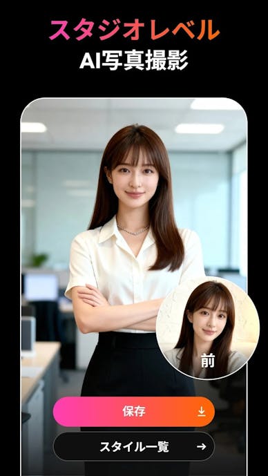 ナチュラルに盛れる補正で自然な印象に仕上げたり、AIスタイル変換で一気に世界観を変えたりと、表現の幅も自由自在。