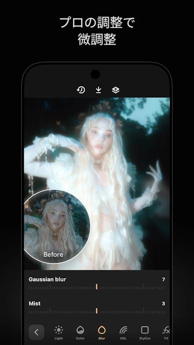 写真を開いてワンタップするだけで、全体を自然に盛れるのが強み。