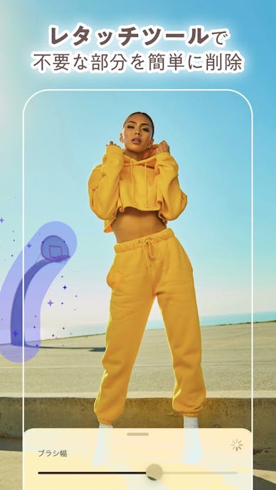 写り込んだ不要物はタップで削除でき、写真の縁を広げる拡張にも対応しています。