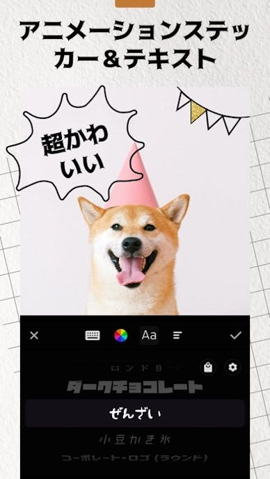 タイムラインで音と映像を同期でき、テキストや絵文字も同時に動かせます。