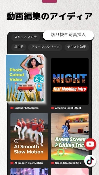 テンプレートを選ぶだけで配置できるアプリも多く、動画編集が初めての人でも直感的に操作できます。
