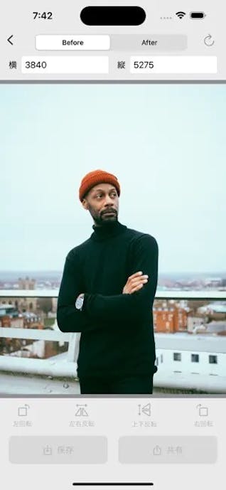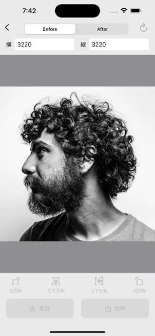 プレビューではズームや位置調整、回転と反転にも対応しています。