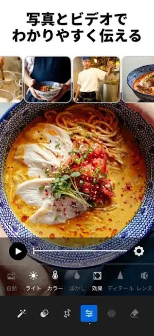 『Canva』は、写真や動画を加工しながらテンプレートでSNS画像まで作れるデザインアプリ。