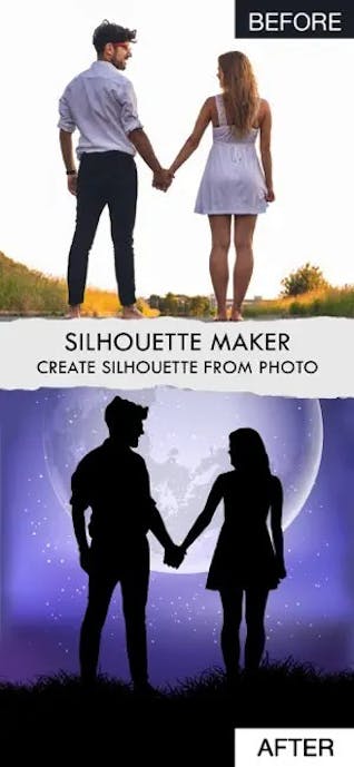 人物写真を影絵のような黒いシルエットにしたい・アイコンや素材用にシルエット化したいという方にぴったりの写真をシルエットにするアプリ。