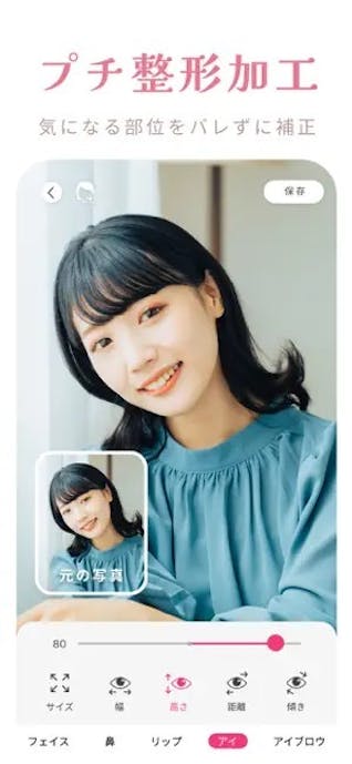 肌の質感補正や顔バランス、輪郭補正まで一度に加工できるのが魅力です。