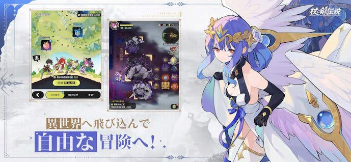 「杖と剣の伝説」は、剣と魔法の異世界「カンスティン」を旅する放置RPGアプリ。