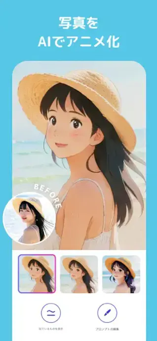 アニメや漫画系の方向にも変換できるため、好みのデザインを探せるのが魅力。
