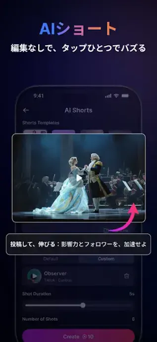 使い方もわかりやすく、AIフィルターを開いて画像を入れて生成するだけ。