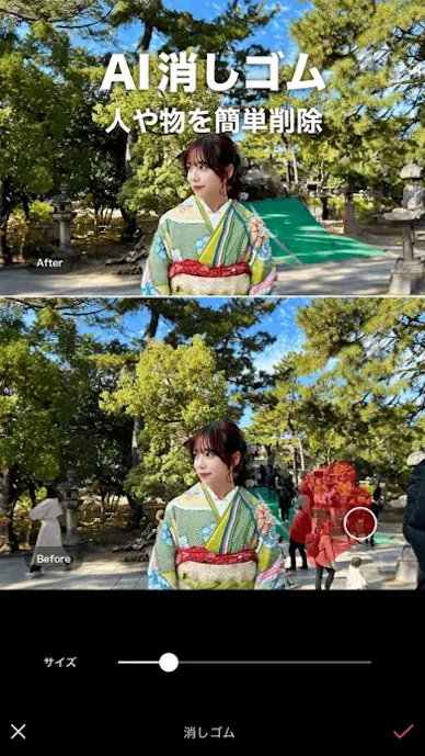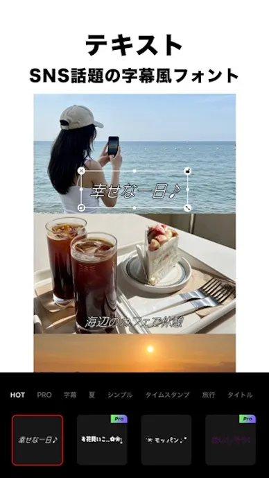 他にも、テキストやステッカー、フィルター、背景除去までそろっており、スマホ1台で写真や動画の編集が完了するのが魅力。