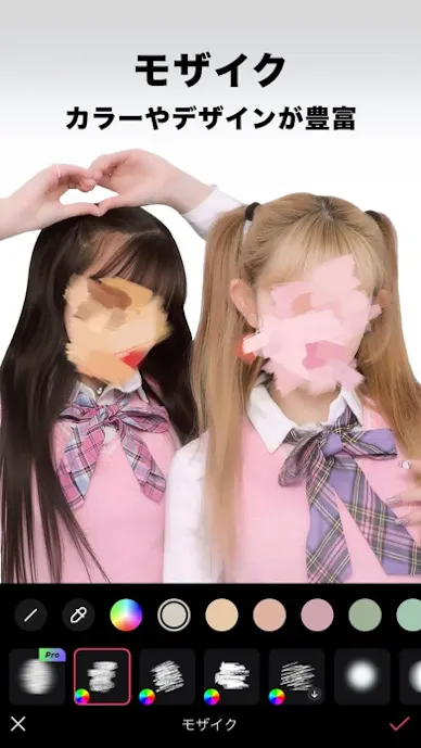 動画では「動画モザイク」機能で人物を自動追跡でき、最新更新では動画ブラシも使えます。