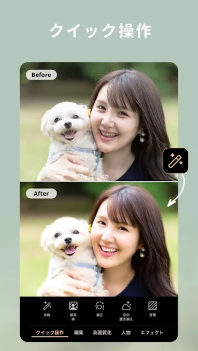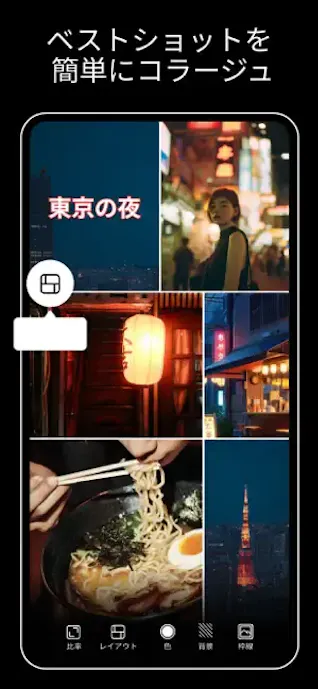 背景削除や文字入れ、コラージュまで一つでこなせるので、SNS用の一枚を手早くおしゃれに仕上げたい人におすすめ。