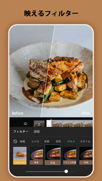動画にも加工機能を使えるため、写真と動画を同じ感覚で整えやすいです。